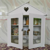 شلف طرح کلبه درب دار یک انتخاب عالی برای آشپزخانه شماست که هم به صورت نصب به دیوار و هم روی کابینت می شود استفاده کرد درب های این شلف زیبا دارای شیشه است که کار را حرفه ای تر کرده است از این شلف می توان برای نظم بخشیدن به بانکه ها و فنجان و یا دکوری جات استفاده کرد.